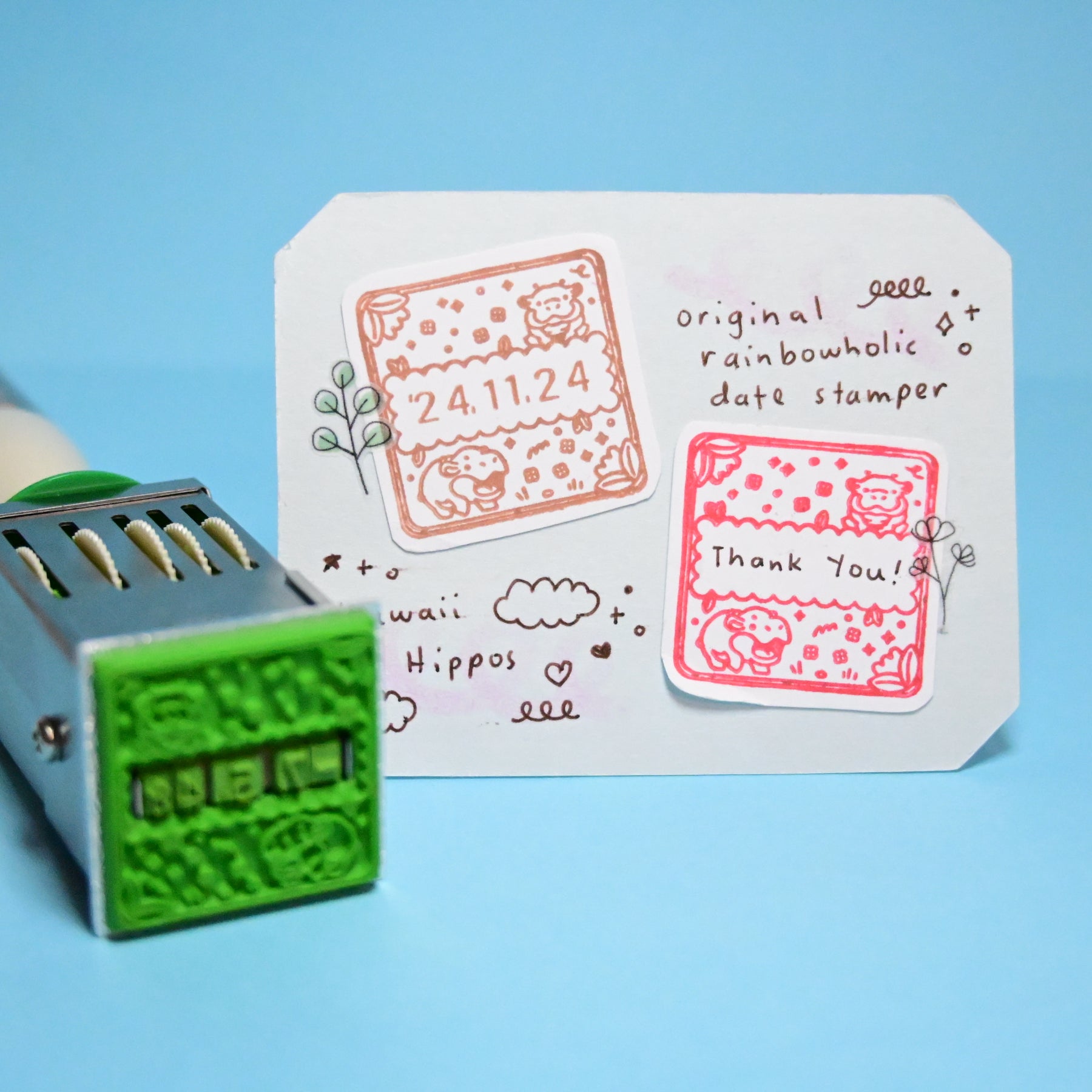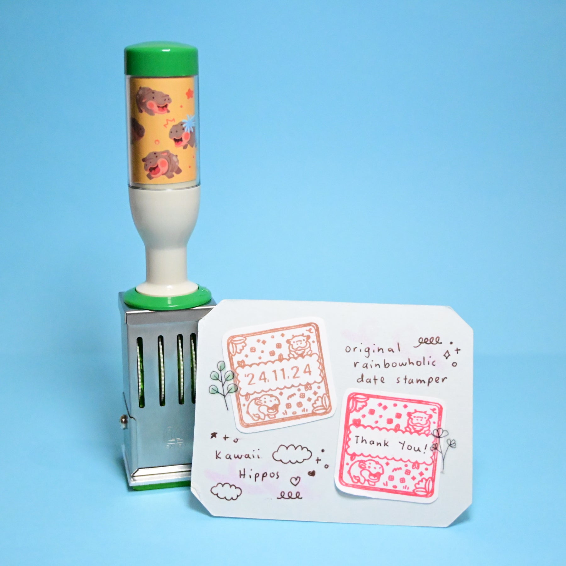 (HS002) Rainbowholic Original Date Stamp - Kawaii Hippo